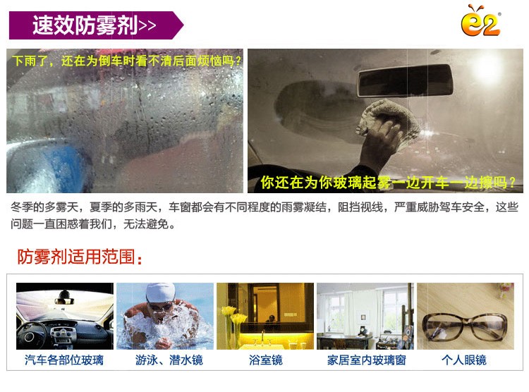 E2防雾擦巾防雾剂 防雾湿巾 汽车防雾剂 泳镜 镜面玻璃防雾